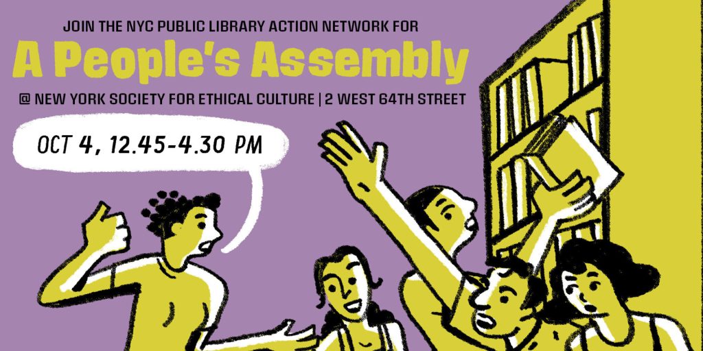 Join us on Saturday, October 4th at the Society for Ethical Culture on the Upper West Side from 12:30 – 4:30pm for a day of conversation and imagination about NYC libraries and how our communities can take measurable actions to support these vital institutions.